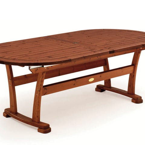 Dette utendørs teakbordet har et klassisk design og er perfekt for utendørs bespisning i hagen eller på terrassen.