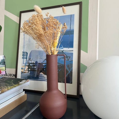 Høyde 9-10 cm, nede 5 cm, oppe 8-9 cm.