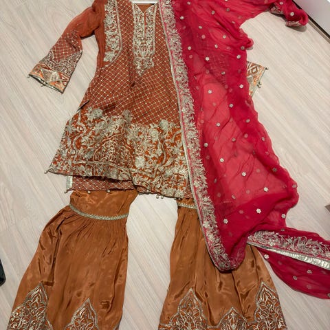 Nydelige Pakistanske/Indiske klær til salgs. Passer perfekt til en hver anledning, bryllup, bursdag evt. andre feiringer. Klærne er i god tilstand, kun brukt 1 gang. Noen er ubrukt. Selges pga. de ikke er i bruk lenger. Str på klærne er S/M. Størrelsen kan justeres.