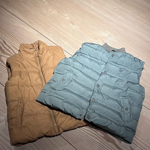 Selger 2 tøffe vaffelmønstrede boble-vester. Den grønne er str 10 år og den vinrøde er str 8 år. Lite og pent brukt. Selges kr 100 pr stk.