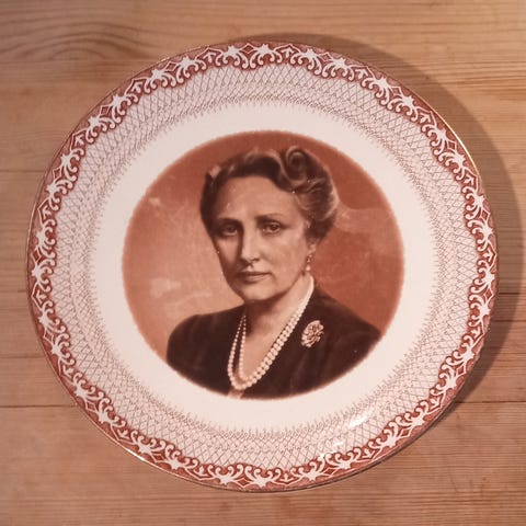 Prinsesse Martha minneplatte 22,5 cm fra Egersund Flint selges. Er litt krakkelert ellers god stand.