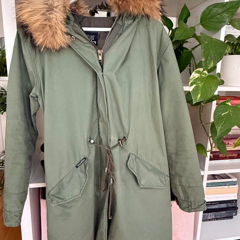 - Materiale: 100% Ull med (avtagbar) pels på hette og lommer