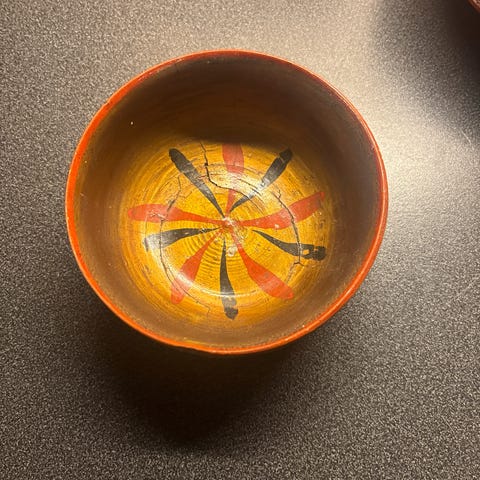 På denne har fernissen perlet noe på utsiden og det er en liten flekk som mangler inni. Ille så i uvanlig. Ellers hel og fin uten sprekk, slik det gjerne er på disse store.