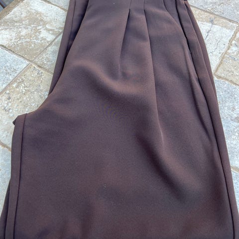 Pen chokobrun bukser fra Clara. Str.38. Livvidde 82 cm. Kvalitet. 98% bomull, 2% spandex. Røyk- og dyrefritt. Ny kr.899,-. Kun prøvd. Som ny. Selger kr.460,-. Pris er satt.