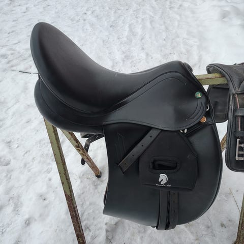 Ideal Rebecca dressur sal (Brun) selges i god stand. Str. 17" og MW.