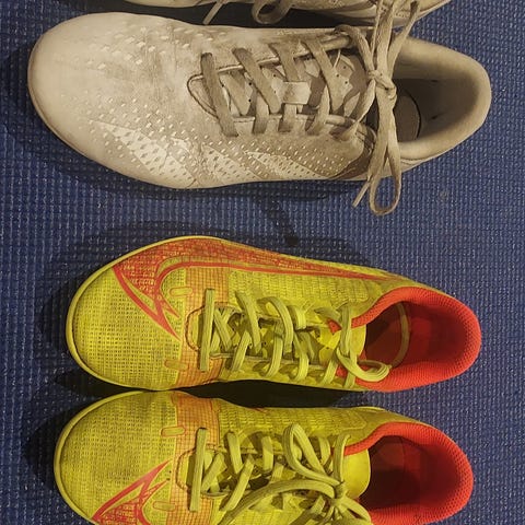 Barnesko, fotballsko, løpesko m. knotter. Nr 25 (5) (25 cm lange)Det er helt nye sko. For ett par kr. 75