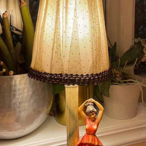 Den store er solgt! Håndmalt lampe fra danske Elisabeth Loholt fra 50 tallet.
