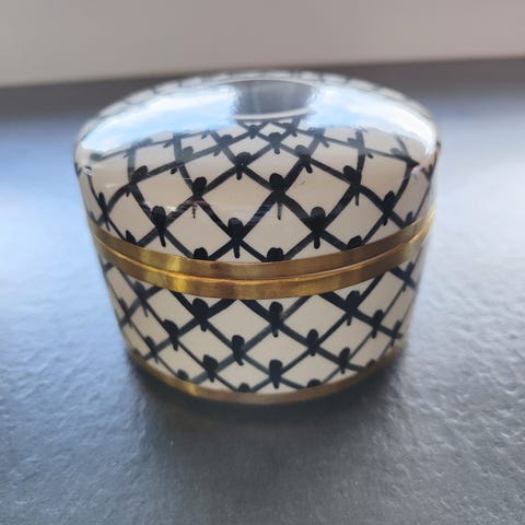 Smykkeskrin med blågull farge, håndmalt fra Tsjekkia, 7x7 selges kr 150.
