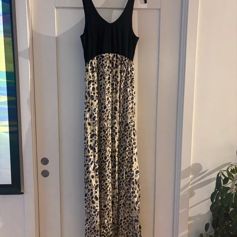 Kjolen vil passe best til en person som er ca. 175 cm til 185 cm høy, da kjolen ikke kan legges opp pga. av at det avsluttende printet/borden i nederkant er en del av kjolens design.