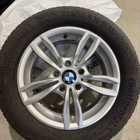 1 sett 16" vinterhjul med pigger og sensorer, påmontert originale aluminiumsfelger. Passer BMW 3 serie F30/31.