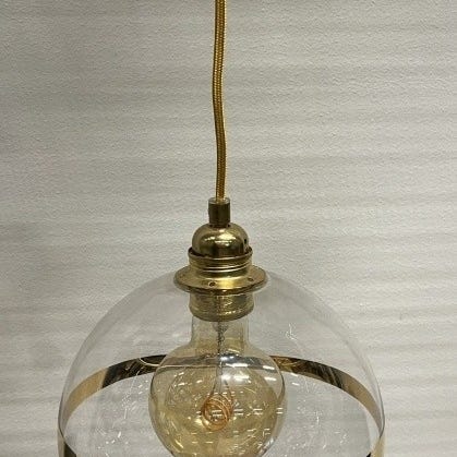Lampen er fra 20-30-tallet, og har nye ledninger. Prismene er i slipt krystall, blanke og røkfargede.