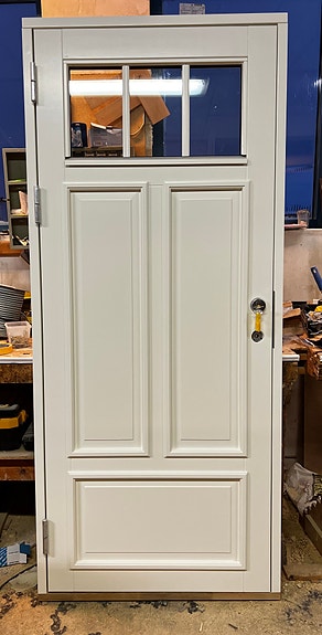 Norskprodusert ytterdør i Svanemerket Accoya, laget for norsk klima. Stabil og vedlikeholdsvennlig.