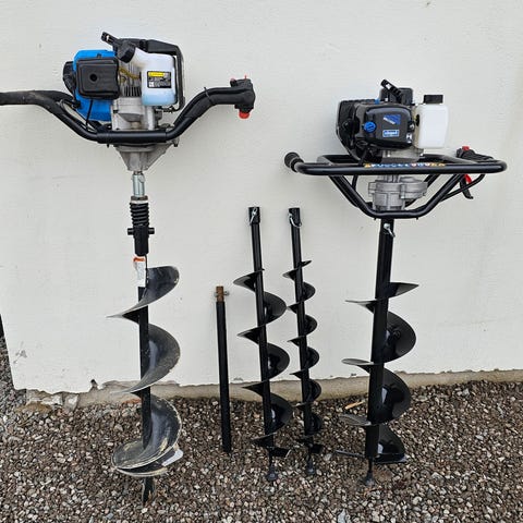 Bensindrevet jordbor med 150 og 200 mm bor.Har også forlenger,slik at det kan bores ca 140 cm i bakken.Ok å bruke til støperør til terrasse og fundament til mindre bygg.Leies ut kr 300.- pr dag. Inkl mva