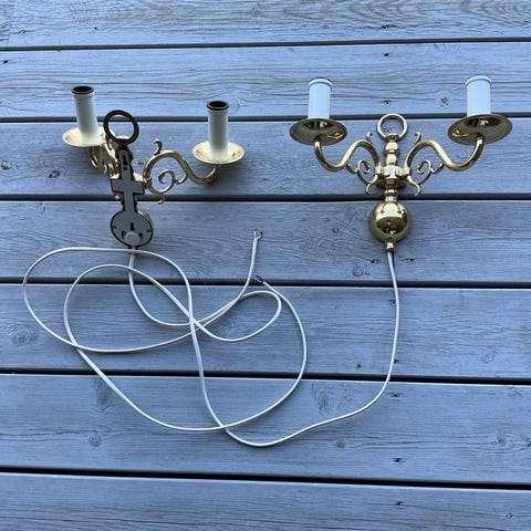 Diverse andre messinglamper selges også.