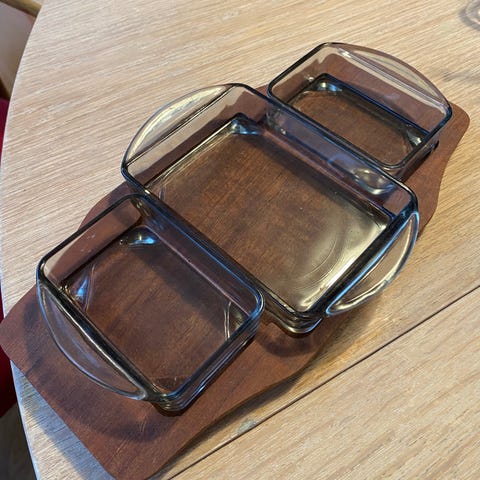 Pent "stettefat" i teak, håndutskjært.