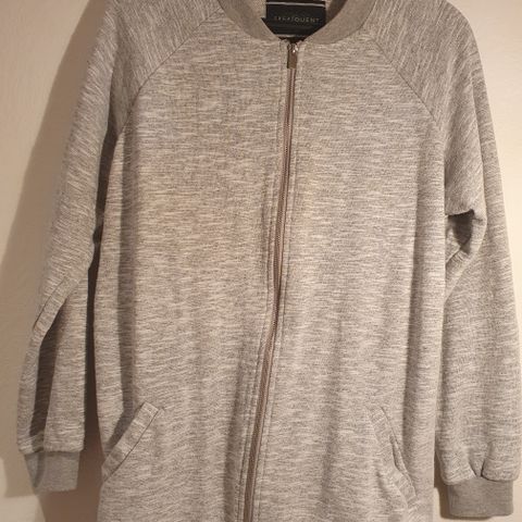 Grå lang innejakke/collegejakke. Romslig i størrelse.