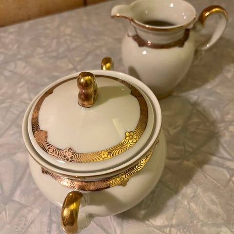 Fløtemugge og sukkerskål med lokk fra Lichte - samlet