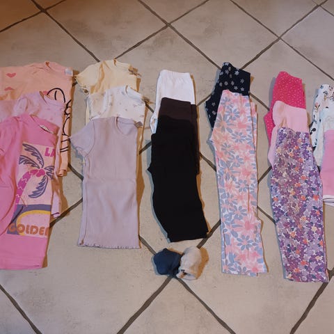 Badedrakk, 2 bukser, votter, sommer kåpe, ull jakke, sommer lue, 2 t skjorte.