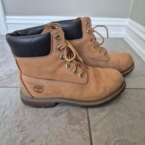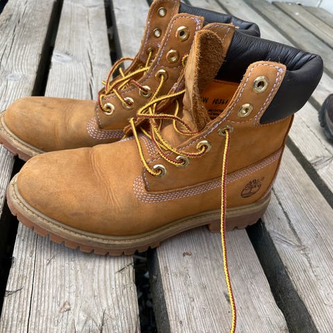 Pent brukte Timberland boots. Står str 8,5 inni. Tilsvarer str 40. Kan også pass str 39 med tykke sokker eller en str 40,5.