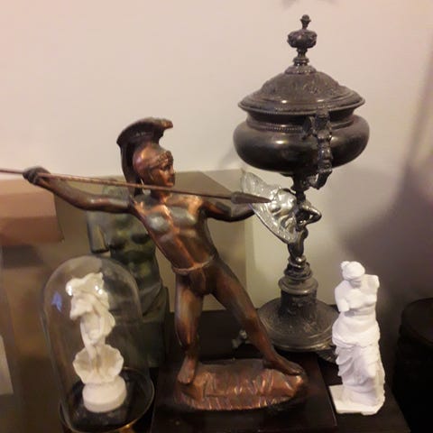 Ulike klassiske skulpturer, figurer og byster. Hellas. Italy. Egypt.
