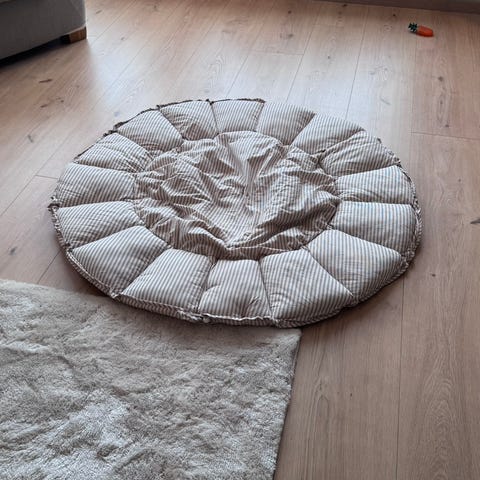 Nydelig håndlagde duk i sand/beige farge mål 165x130 cm. Selges kr 150. Har Vipps. Hentes i Slemmestad. Sendes for kr 69 i tillegg.