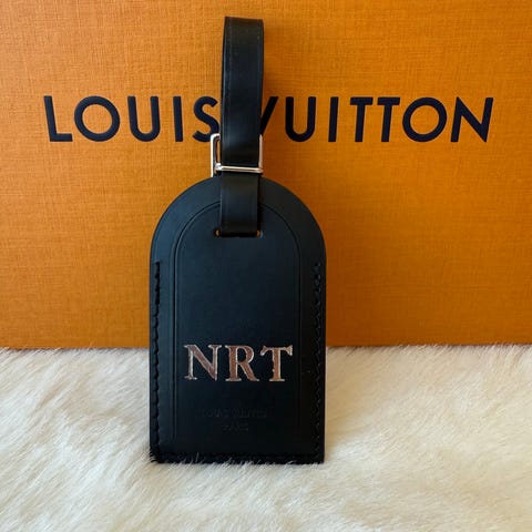 Selger en brukt luggage tag med gris stemplet på og initialene H. A bak.