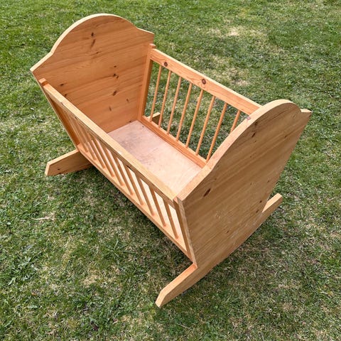 Meget pent brukt barnevugge m/ utskjæringer selges. Her er det mulighet for mange gode timer på øyet for den minste. Madrass medfølger ikke.