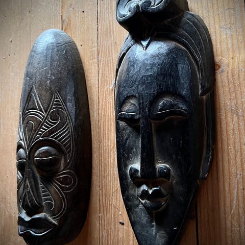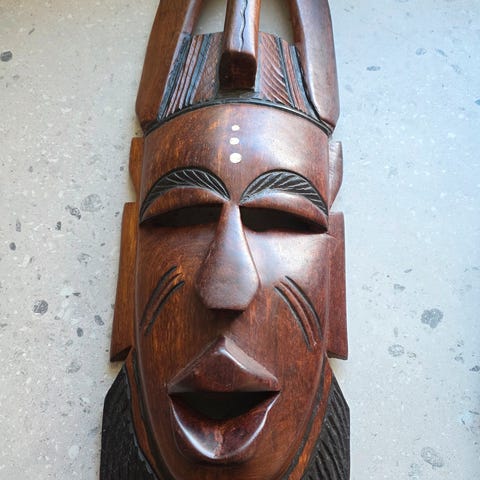 Tremasker fra Angola, alle med stempel. 1 stk 20•34 cm og 2 stk 15•32 cm. Kun kr 1000,- for alle. Kan også selges enkeltvis.