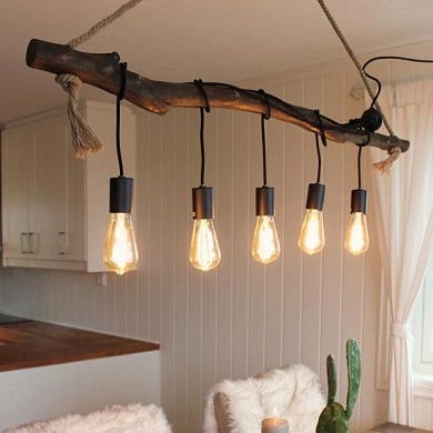 Taklampe i vintage retro design. Hamp, tau
