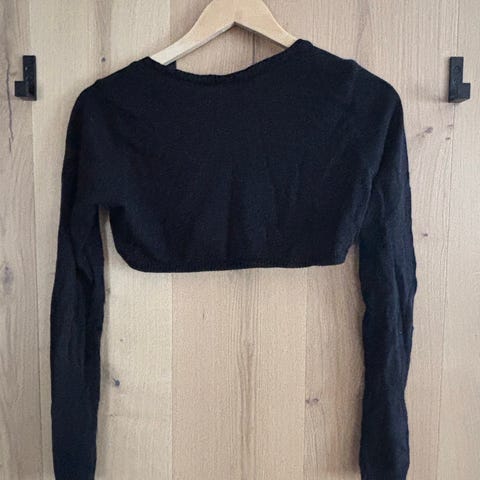 Svart strikket bolero. Nett og deilig. Veldig pen og praktisk til selskap hvor du har kjole/topp og vil ha noe over skuldrene. Sender gjerne, frakt 50.-