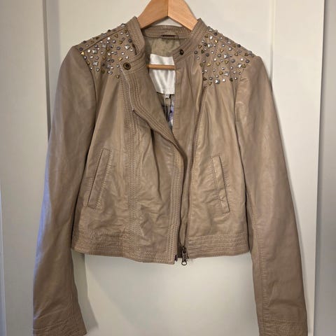 Flott skinnjakke fra InWear med nagler og studs i div. Messing og sølvtoner. Jakken er ny med tags og selges til høystbydende!