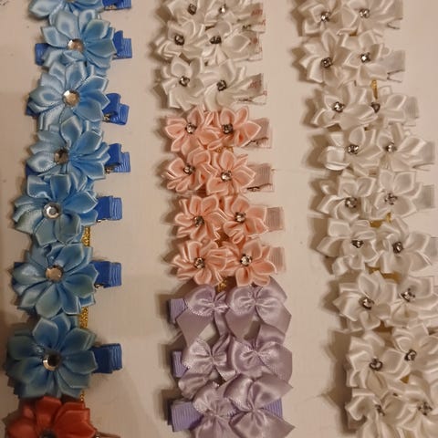 Nydelig sløyfebånd og små sløyfer til å sy på dåpskjole og dåpslue Baby