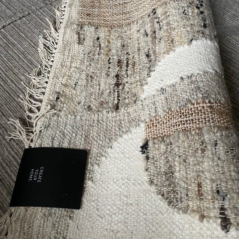 Nedsatt pris! Flott håndarbeide! Teppe fra Nordfjord. 115 x 160 cm i fargene mørk grønn, sort, rødt, burgunder og offwhite. Flott arbeid. Skjøt på midten. Bud mottas.