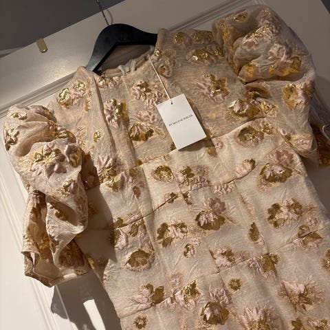 Brukt en gang og er som ny. I viscose, litt oversized oppe og smalere nede. Nydelig tungt stoff som faller fint. Kjøpt på Høyer for 3000 kr.