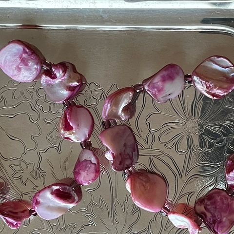 Cuffs med gjennomsiktige rosa/cerise knapper (De til høyre på bildet/På utstillingshånden)