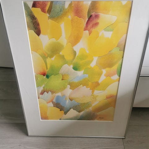 Forskjellige akrylmalerier malt av Pia C Holten Natvig selges.