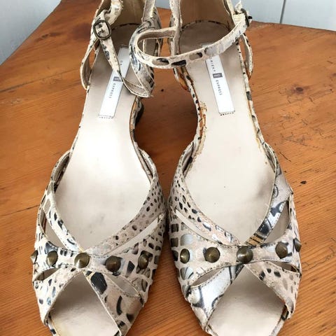 4. Ny ubrukt hæler DinSko dyreprint slingback. Skinn. Ny(280,-). Kr.200,-.