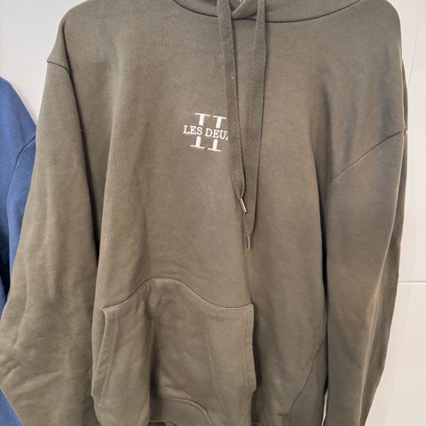 Mørk blå med kamuflasjemønster på lommer og innvendig linning.