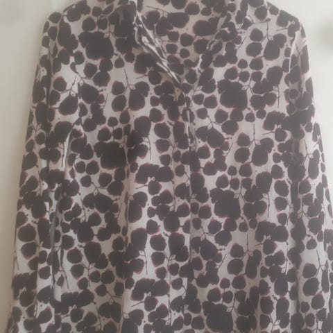 Bluse med slangemønster i sort og hvitt fra Saints & Mortals i størrelse XS (løs fasong, passer også størrelse S).knappelukking i front og brystlommer. Pent brukt uten flekker eller skader.