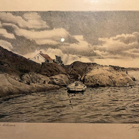 Sommerdag ved fjorden Mål: 37,5 . 31,5 cm.
