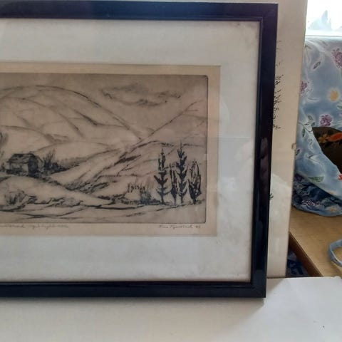 Olje maleri malt på papir av av norsk kunster Olav Johnsen til salgs. Vennligst se vedlagt bilder. Maleriet er med ramme . Redusert ny pris selges for kr 700
