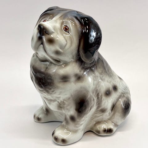 Byste av hund, sendes gjerne. 15 cm høy. Tung, kan passe i bokhyllen, som dekorasjon etc.