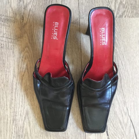 4. Sorte høye hæler Slip On fra Blues. Leather. Str.38. Som ny. Ny(1.598,-). Selger Kr.800,-. Pris er satt.