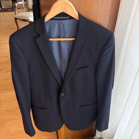 Ubrukt sort smoking jakke str. Large selges. Finsk design, 75% Terylene, 25% Wool worsted.