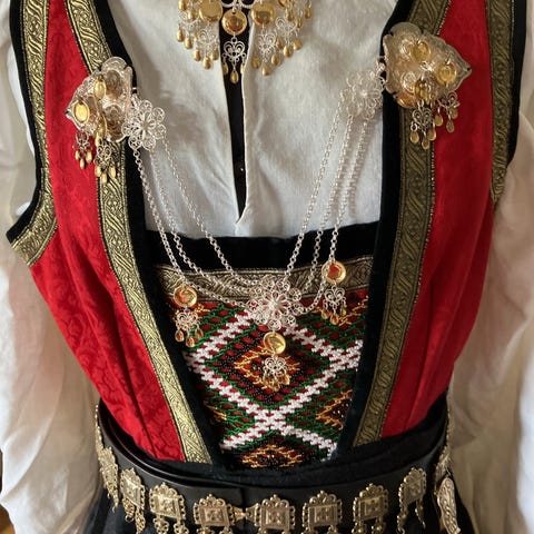 Jeg kan montere og brodere ny bunad til en pris 25000 kr.