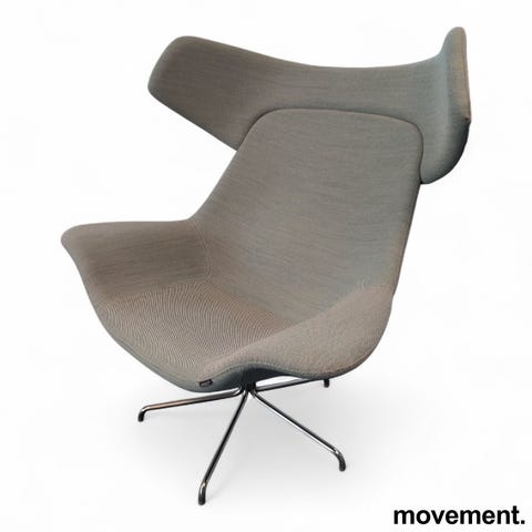 Loungestol fra Offecct, modell Oyster High, Grått stoff/krom base, design: Mich