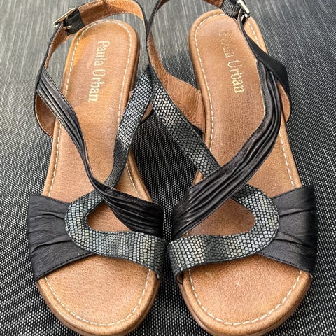 Esprit sandaler i syntetisk skinn str 38 lys beige med gullnagler. Nye.. Liten flekk på ankelrem syns ikke, derfor selges billig.