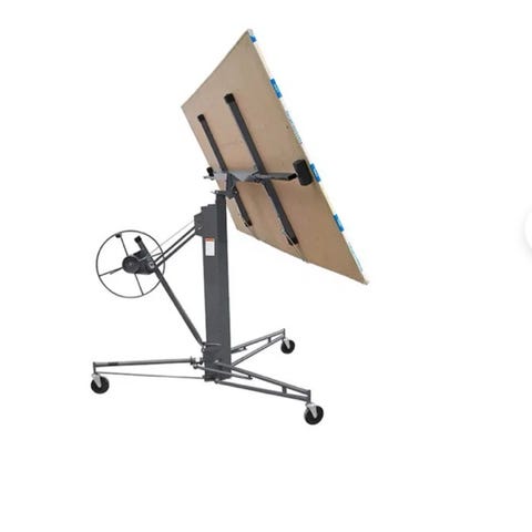 Gipsheis med vinkel for lettere montering av gips/sponplater i tak og skråvegger. Lett å montere/demontere. Kan fint håndtere gipsplater i størrelse 122x488 cm.