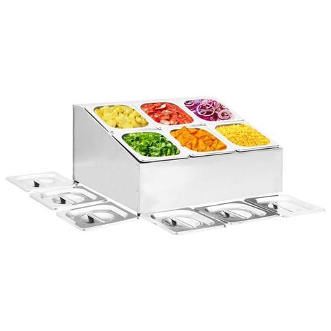 Materialer: eksteriør av rustfritt stål, samt innerbøtter, lokk og base av polypropylen (PP)