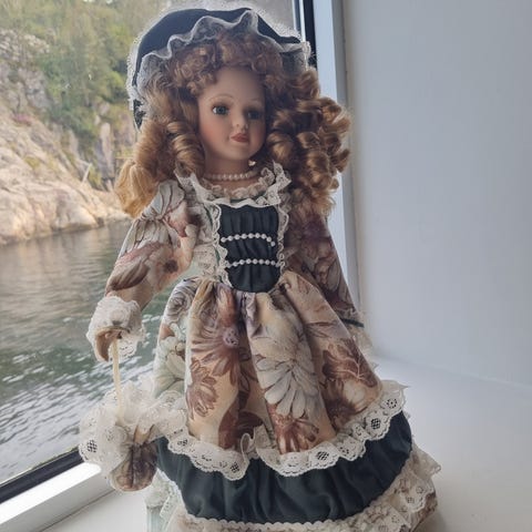 Stor fin dukke i lekker kjole - 44 cm høy.